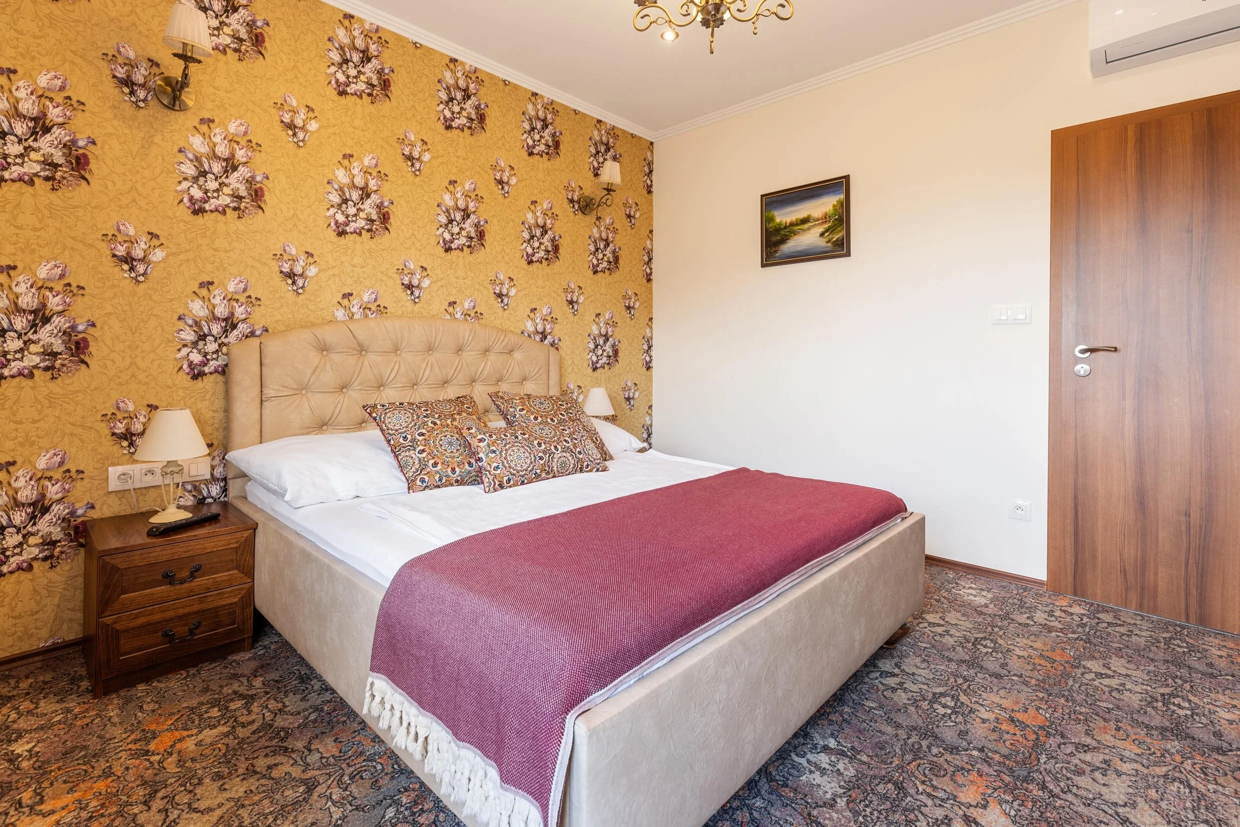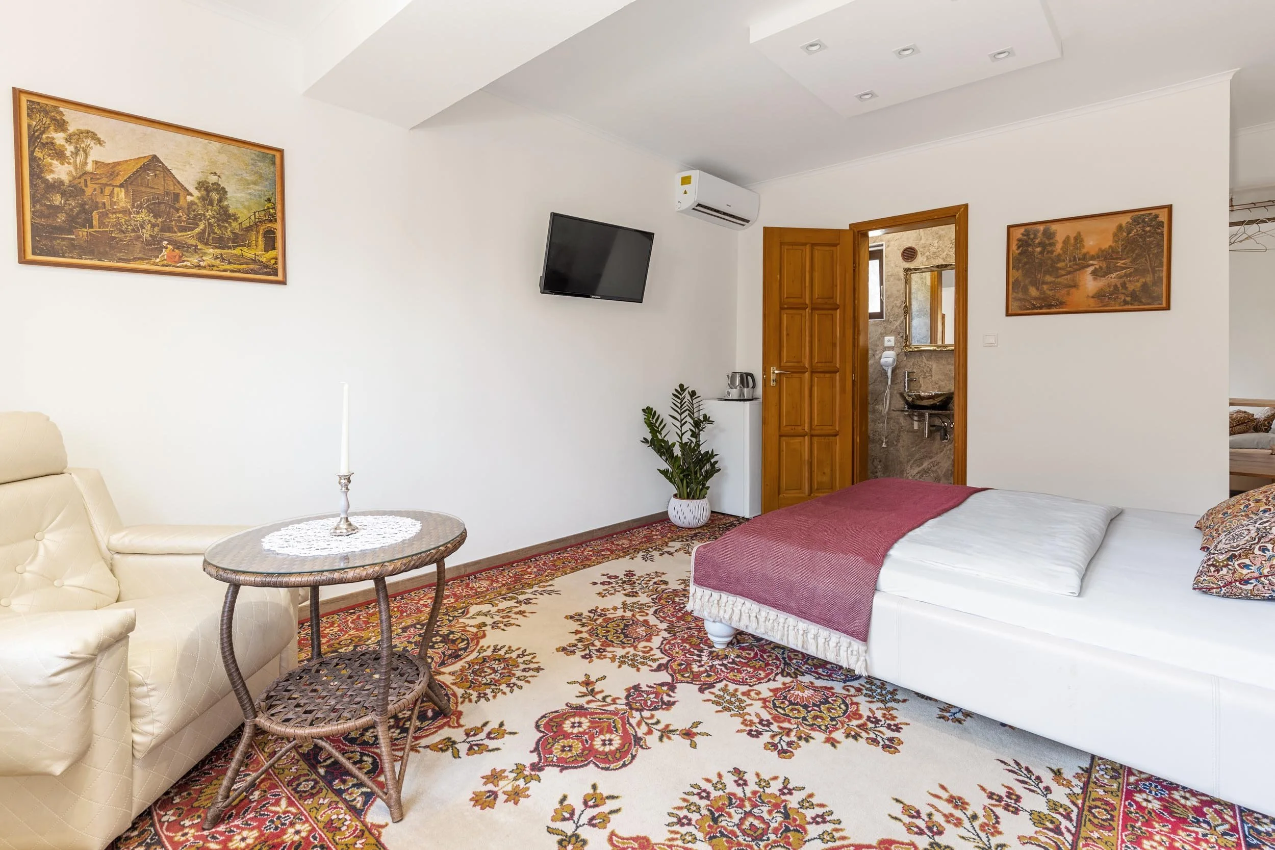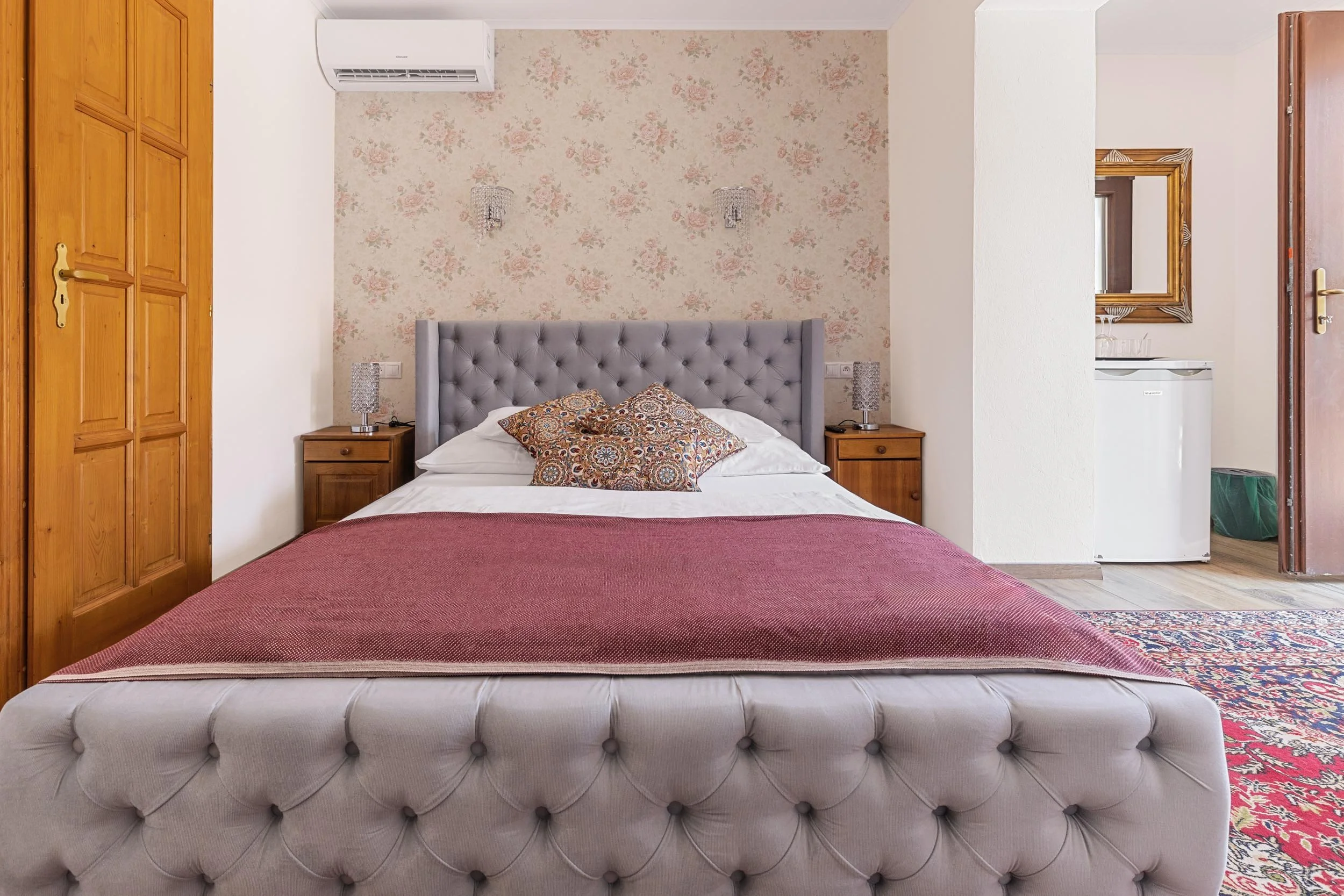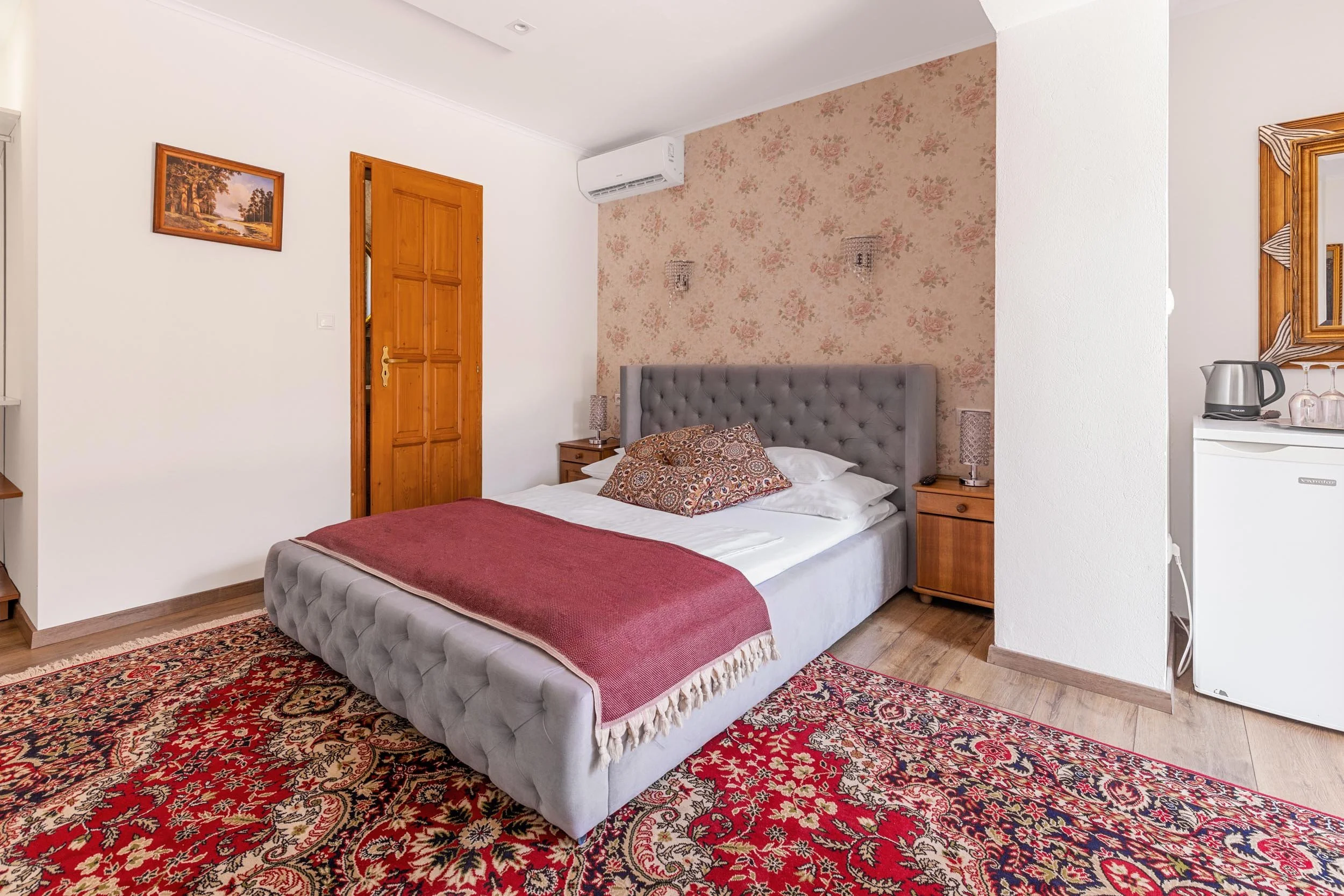 A szoba franciaággyal, műholdas TV-vel, Wi-Fi csatlakozással, légkondicionálóval, hűtőszekrénnyel és vízforralóval felszerelt.