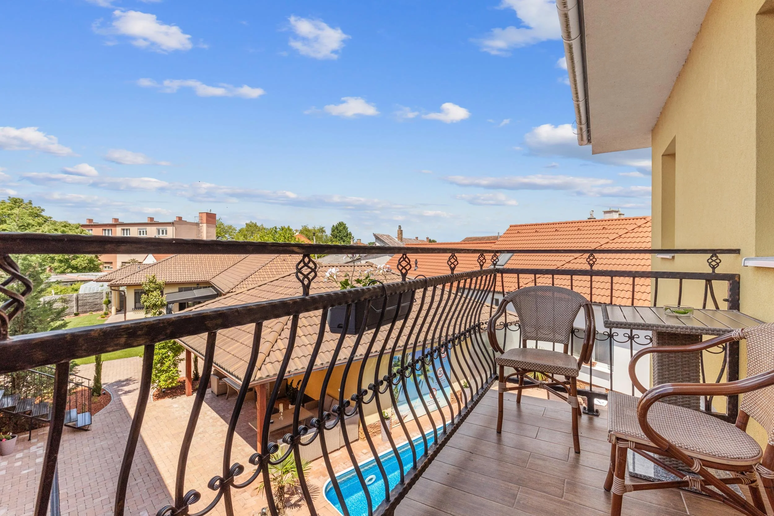 Kétágyas szoba erkéllyel és medencére néző kilátással